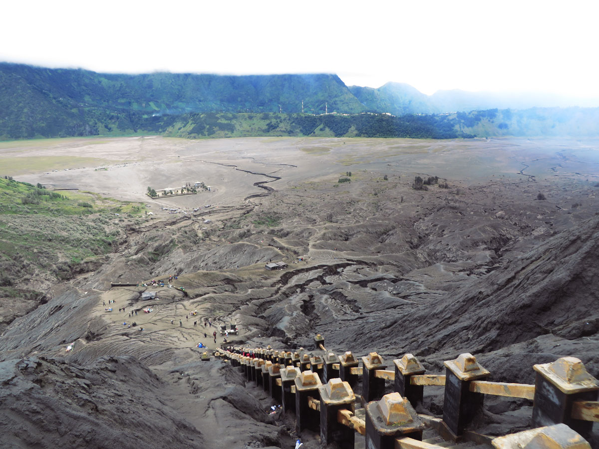Gw juga mengunjungi kawah Bromo. Untuk naik ke atas kawah, bisa melalui tangga yang katanya memiliki sekitar 250 anak tangga. Kawah Bromo adalah salah satu kawah gunung berapi paling aktif di dunia. Gw melihat lumpur panas, dan asap yang keluar dari kawah.